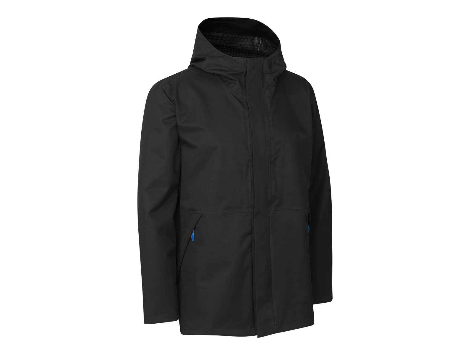 Eksklusiv og moderne ID® TECH regnjakke i twill kvalitet med stretch. Jakke er med fourfri BIONIC-FINISH® ECO. Flotte indvendige print og tapede sømme. YKK lynlåse med fne kontrastdetaljer i front og lommer. Jakken har lynlås, som lukkes med skjulte trykknapper for maksimal vandtæthed. Hætten har indvendig regulering samt let skygge fortil. Ærmerne har justerbar lukning.