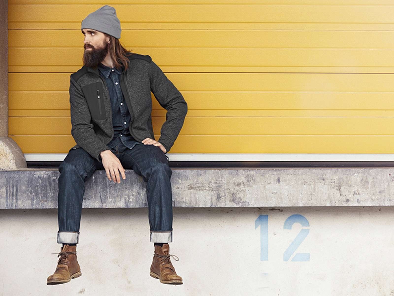 Smart strikfleece cardigan i melangefarvede garner med kontrastbesætninger. To-vejs gennemgående kvalitetslynlås. Justerbar snøre i bund. To sidelommer og en brystlomme, alle med kvalitetslynlås.