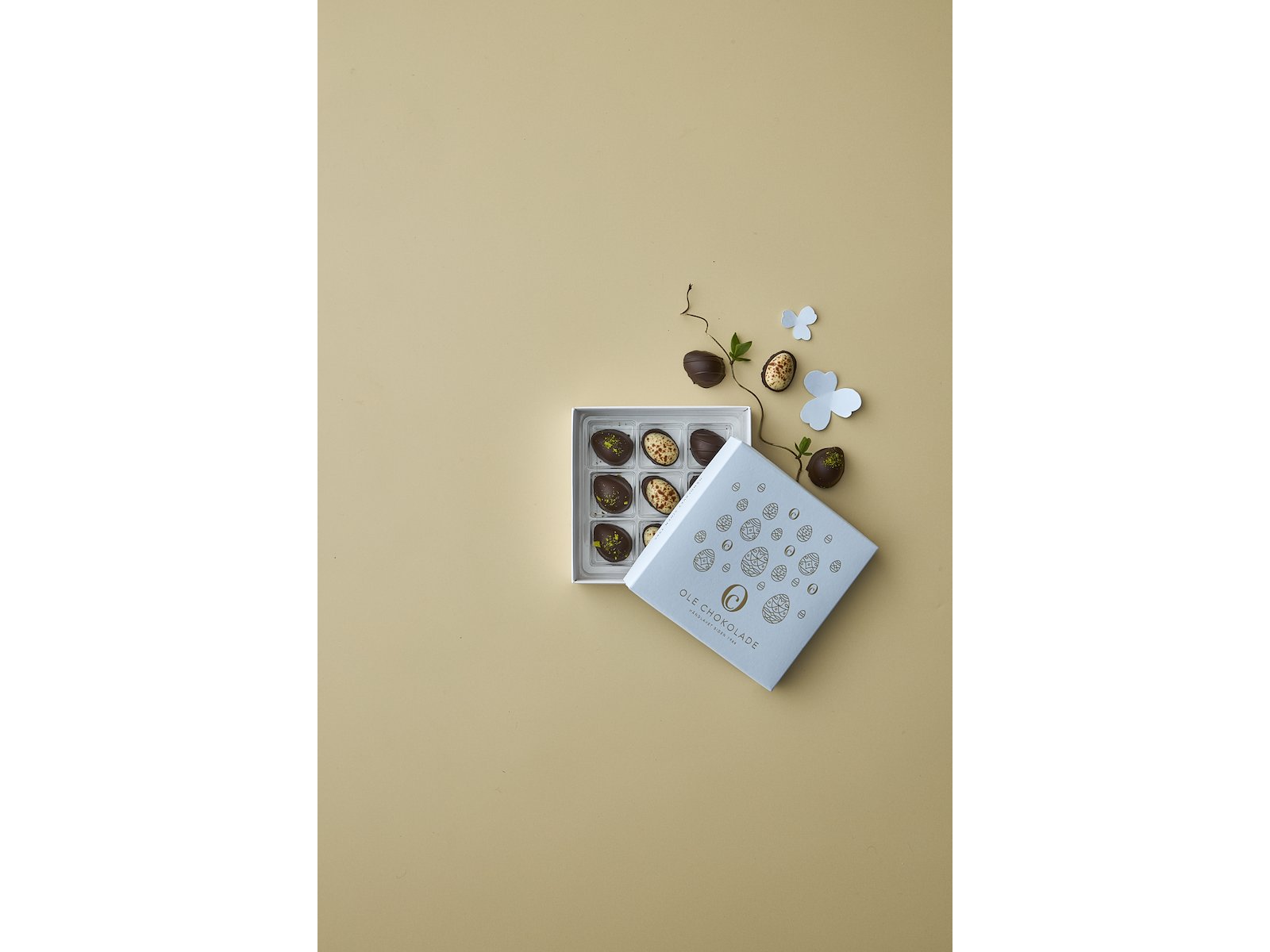 Gaveæsken indeholder 9 delikatesseæg af 3 forskellige smagsvarianter.