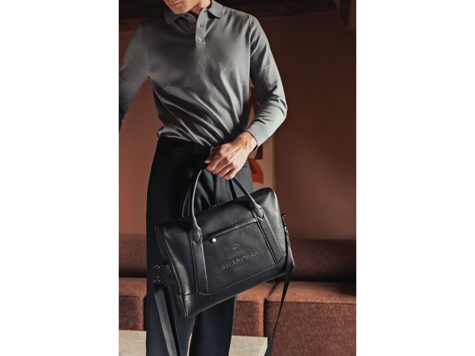 Som prikken over i'et har den et rundt håndtag af smørblødt handskeskind, en praktisk trolley strop og en bred skulderrem.