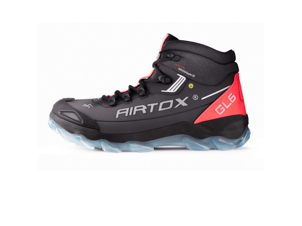 Sikkerhedsstøvlen er udstyret med verdens letteste sømværn; Whitelayer® samt udstyret med specialfremstillede ergonomiske tåkapper i aluminium. Modellen er designet og udviklet i København juni 2018. Udstyret med Airtox AIR-system 3.0, og påsprøjtet i flydende form med den nyeste og mest avancerede robotteknologi på markedet til dato.