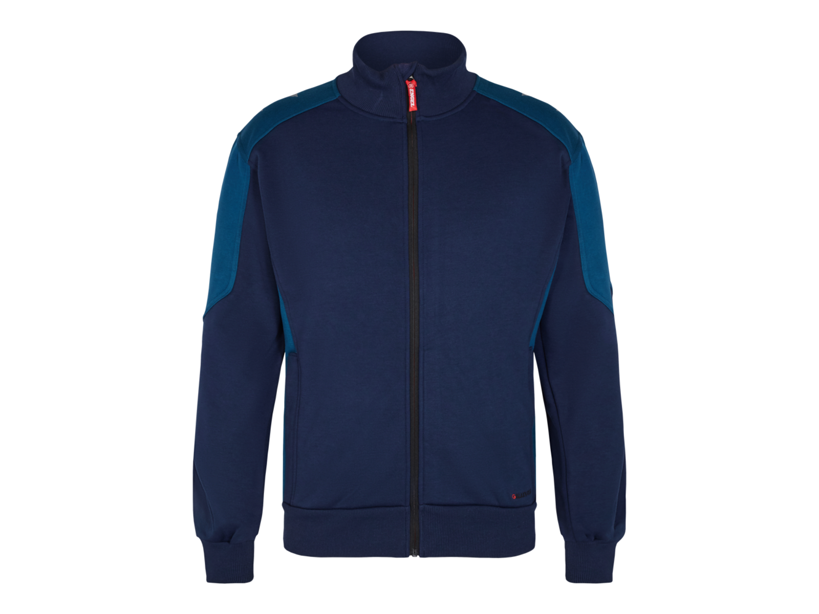 Lynlås i front. To rummelige stiklommer med lynlås. Ribkrave og rib i bund og i ærmer. Refleksprint på skuldre for øget synlighed.