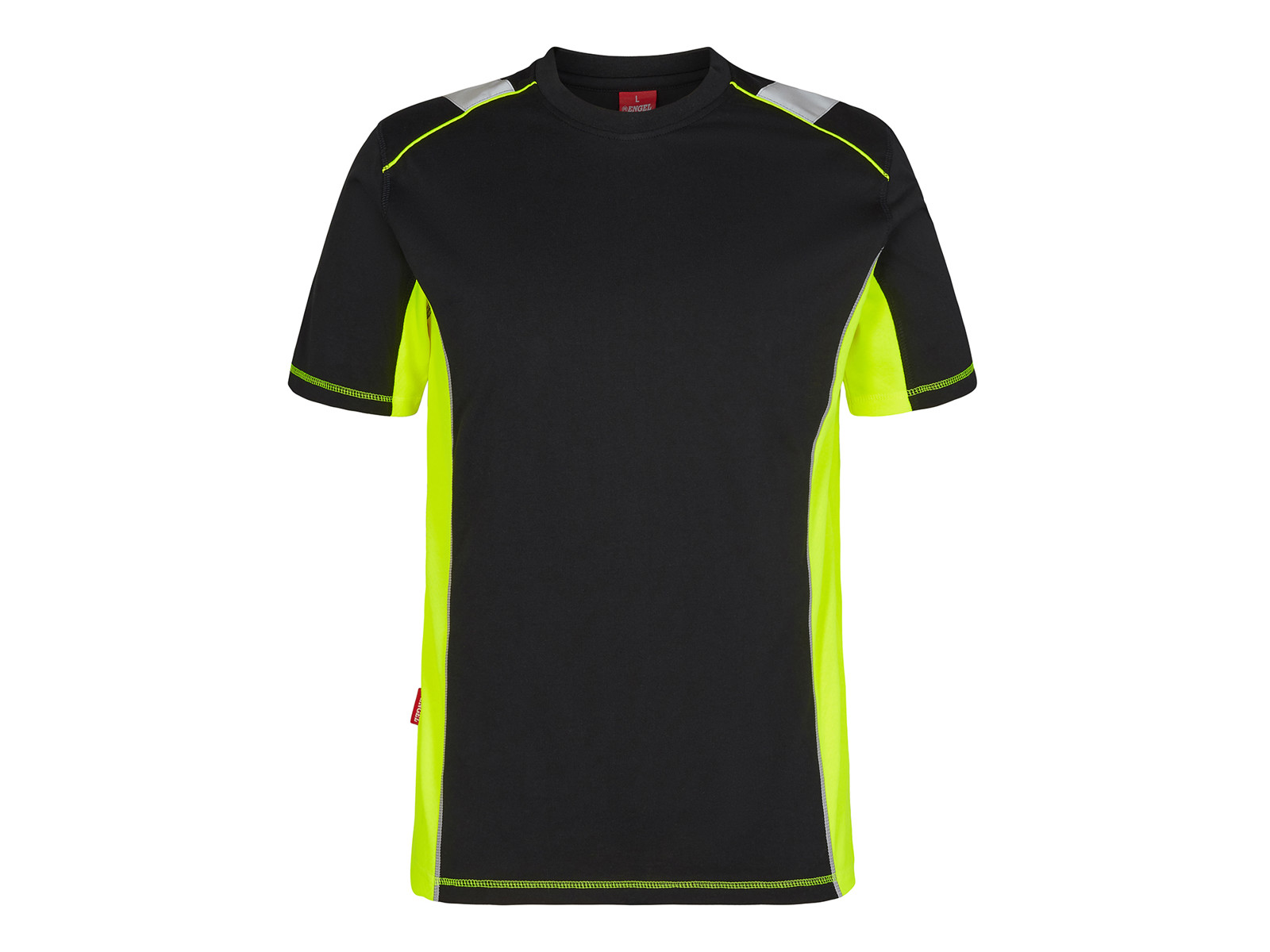 T-shirt i behagelig metervare med rib i halsen. Refleksdetaljer for øget synlighed.