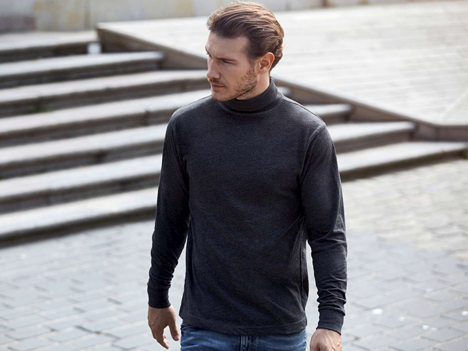 T-shirt med rullekrave og lange ærmer. Ekstra elastisk rib i rullekrave. Ribafslutning ved ærme.