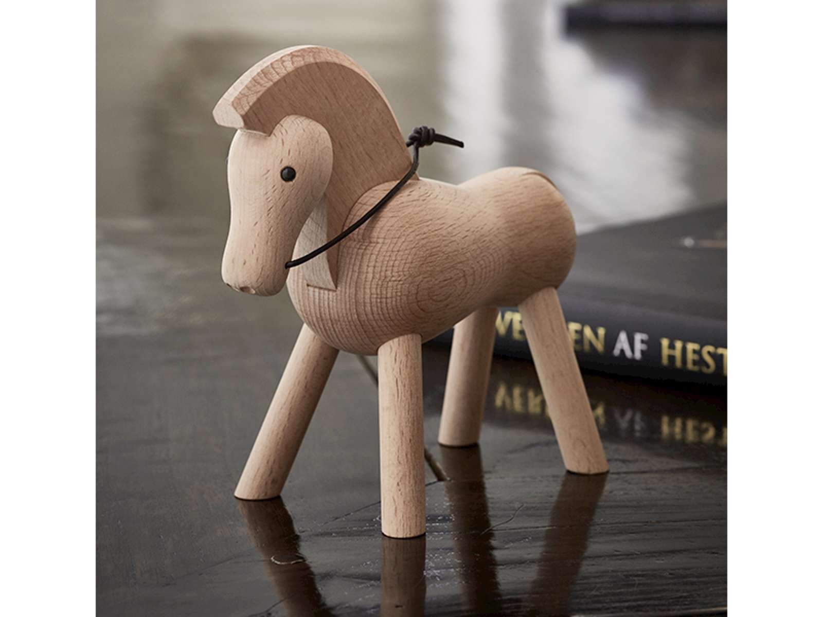 Hesten fra Kay Bojesen er designet helt tilbage i 1930'erne og var allerede dengang meget populær blandt børn og voksne. Figuren er glat og træets struktur giver hesten et rigtig flot spil. Hesten måler 15x14x7,1 cm (BxHxD).