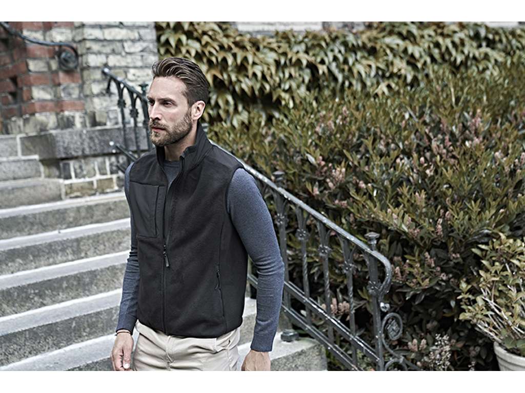Denne Mountain Fleece Bodywarmer er perfekt til overgangen mellem sæsonerne. Den kan bæres i byen, på arbejdet eller på en gåtur. Den kraftige og bløde polyester fleece kombineret med reinforced ripstop polyester på skuldrene, gør den både cool og funktionel. Den har kvalitets SBS-lynlåse, brystlomme og 2 store forlommer.